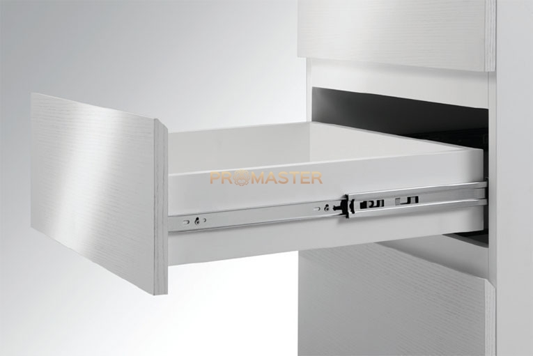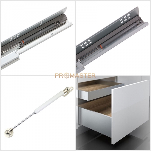 Телескопічні напрямні, виготовлені з високоякісної легованої сталі, випускаються довжиною 25-60 см з кроком 5 см. Зручний механізм дозволяє легко знімати ящики, а повне висування надає відмінний доступ до вмісту та забезпечує безшумний хід напрямних. Компанія серйозно ставиться до всіх питань, пов'язаних зі здоров'ям, і стежить за якістю матеріалів, що використовуються. Деякі елементи фурнітури виготовляються із якісного пластику. Рік за роком Фурнітура Muller надійно виконуватиме свою роботу, незалежно від матеріалів, розмірів та ваги меблів.