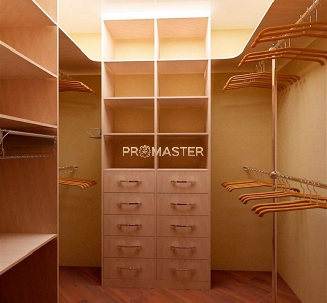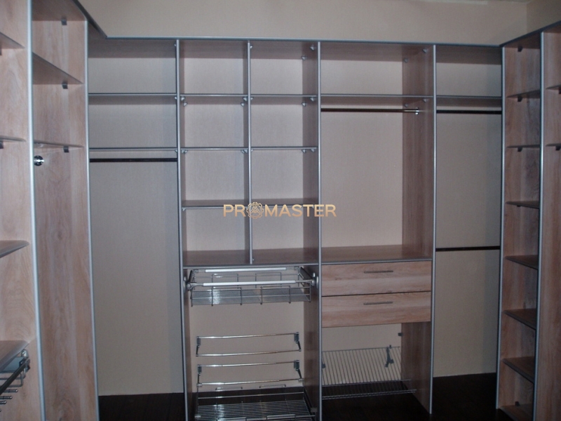 До того ж, проектування гардеробної кімнати за індивідуальним планом не завдасть сильного удару по сімейному бюджету, монтаж також не займе багато часу, навіть косметичний ремонт після встановлення буде не потрібен. Дуже зручно, що при виникненні потреби в додаткових поличках, скриньках та кронштейнах під вішалки їх можна придбати та встановити самим або за незначну плату вже після того, як замовлення виконане.