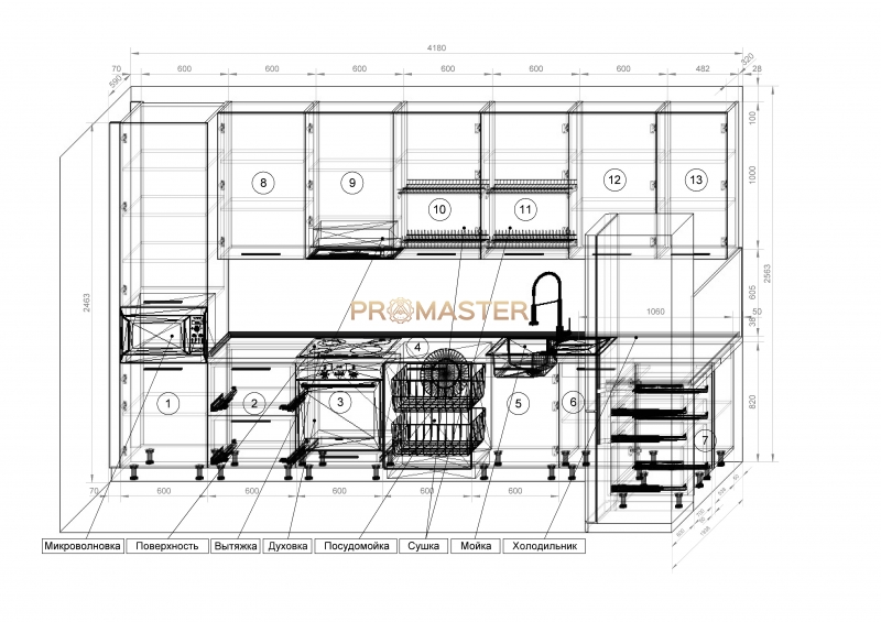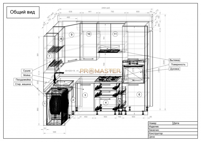 | Кухні прямі (деталювання + креслення + фурнітура) | від 850 грн./м.п. |